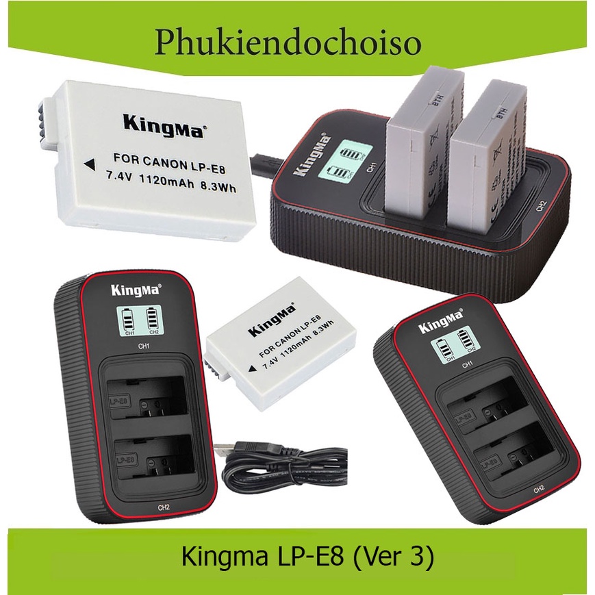 Cameras & Flycam > Phụ kiện máy ảnh > Bộ sạc pin || Pin sạc Ver 3 Kingma cho Canon LP-E8 (Sạc nhanh - Cổng Type C)Còn hàng
