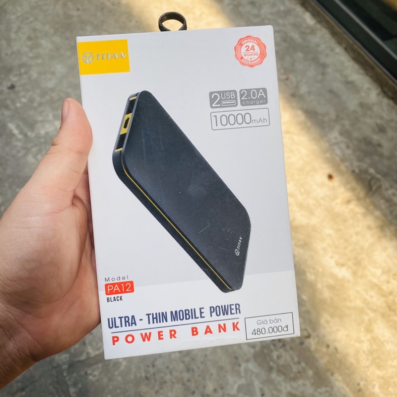 Pin dự phòng Titan 10.000mAh vỏ kim loại Hỗ trợ sạc 2A 2 cổng ra outputHàng mới về chiều nay anh em nhé , giá vẫn bất chấp luôn ạ