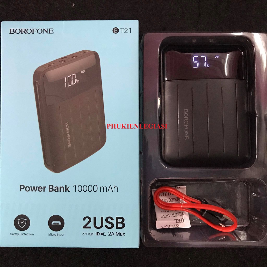 -Pin SDP 10000MAH BOROFONE BT21 gồm 2 cổng usb và 2 đèn Led-Qúy khách lưu ý: Pin sdp 10000MAH BOROFONE BT21 dung lượng 10000MAH là thông số của pin khi nạp đầy ở điện áp 3.7V nhưng khi ta nạp vào điện thoại hay... Thì dòng áp ra là 5v vì vậy đối với pin có hiệu suất chuyển đổi tốt >60% được xem là pin tốt. Vì vậy dung lượng thực tế khi nạp đầy xã cạn của pin này rơi vào khoảng hơn 6000 mah. Đối với bất kỳ pin sạc dự phòng nào cũng vậy. Nếu có thể khách nên thay cáp kèm theo pin sdp mà hãng cho thường là đồ không ngon quý khách nên sử dụng dây xịn hơn để cải thiện thời gian sạc vào và ra.
