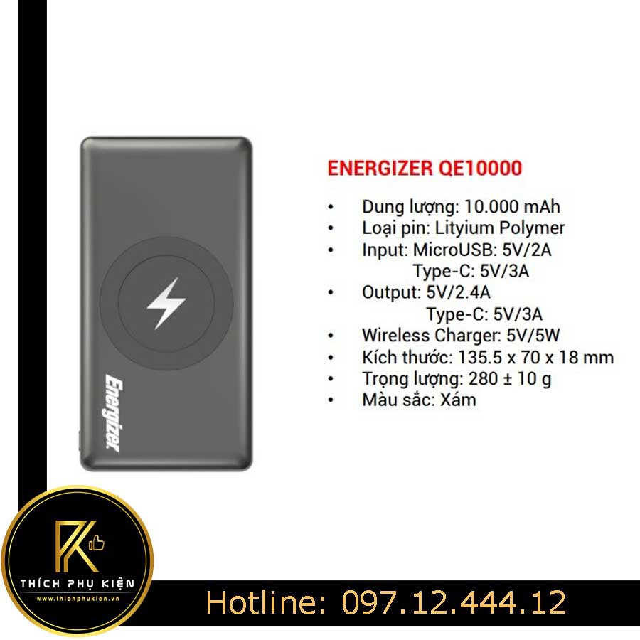 Pin SDP Energizer QE10000 10.000 mAh - Sạc dự phòng không dây