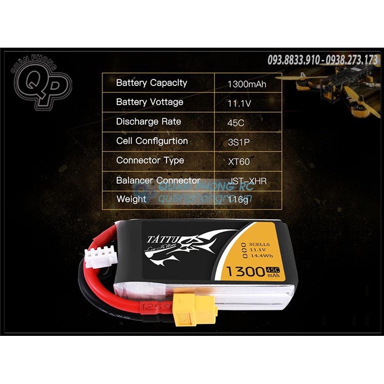 Giới thiệu Pin Tattu 11.1V 1300Mah Lipo 45C