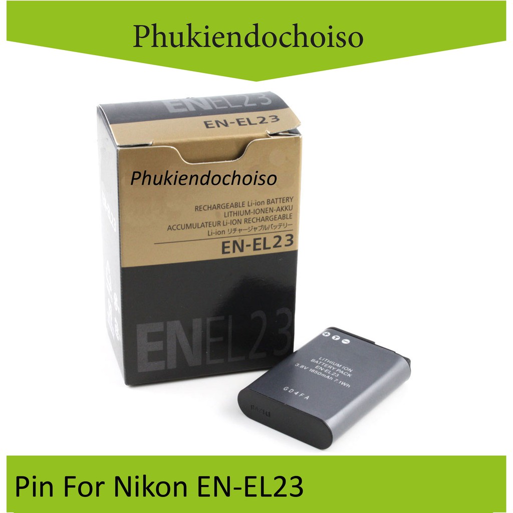 Bộ sản phẩm gồm: 1 pin máy ảnh Nikon EN-EL23Pin thay thế pin máy ảnh Nikon EN-EL23, Dung lượng cao