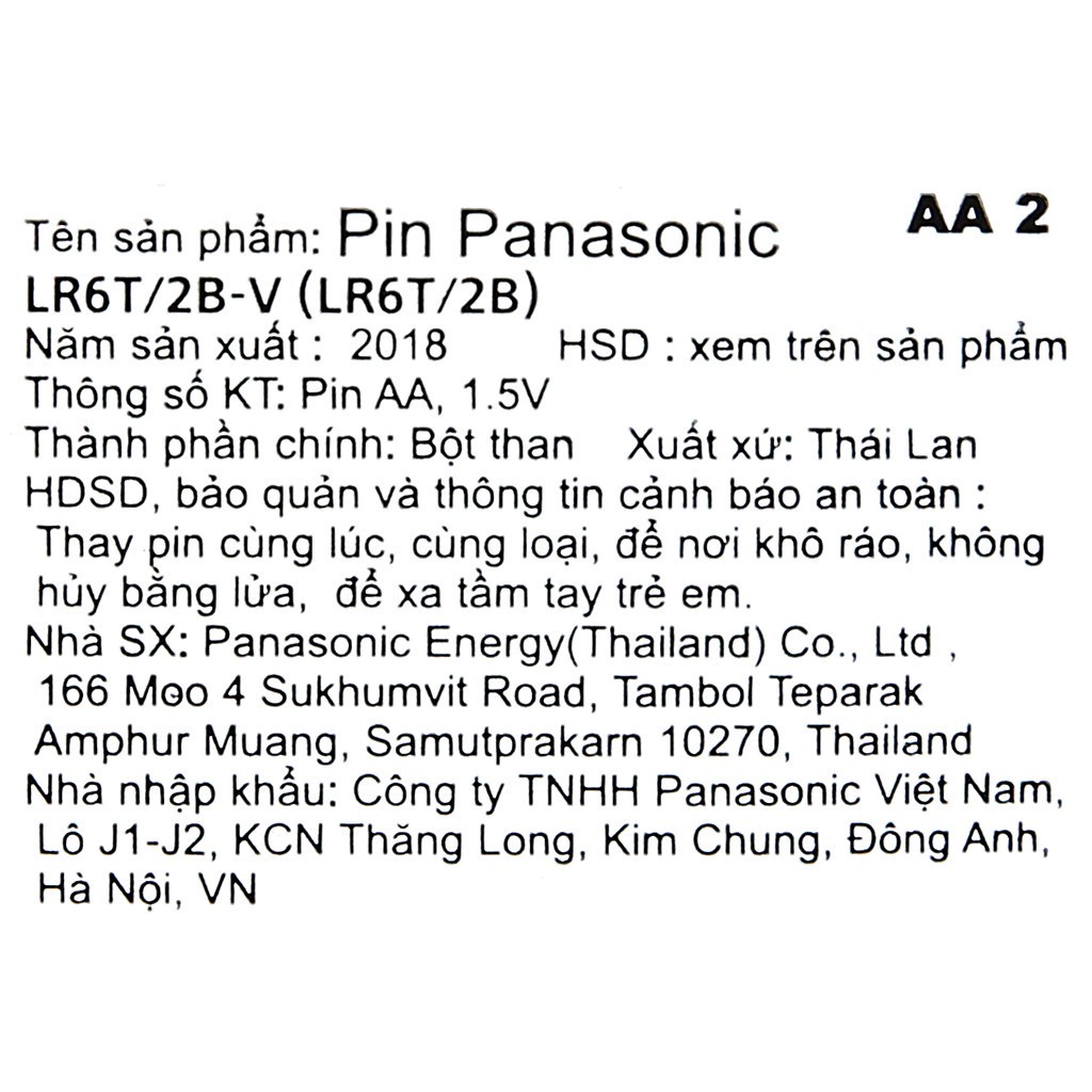 Thiết Bị Điện Gia Dụng > Pin || ✅ Pin Tiểu 2A (AA)- Panasonic Alkaline (Vỉ 2 Viên), Pin Thật - Chính Hãng -VT0038Còn hàng