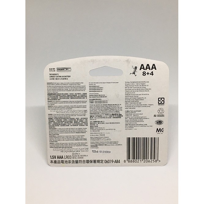 Pin tiểu AA Energizer max vỉ 12 viên- Hàng chính hãng Energizer, có tem công ty DKSH phân phối