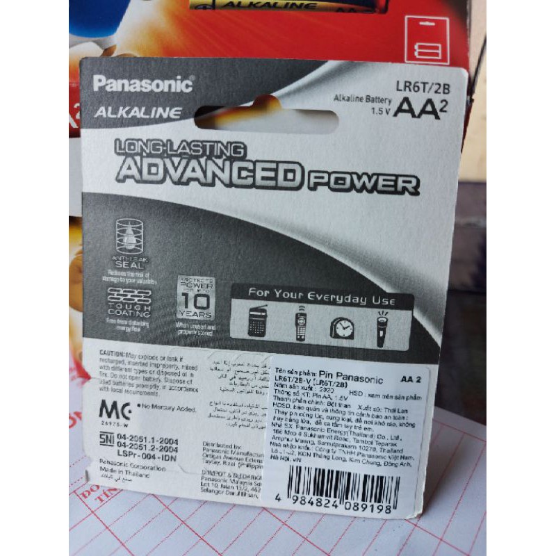 Pin tiểu Panasoic LR6T/2B Size AA2 - vỉ 2 viên/1 hộp (1 hộp 12 vỉ) - 100% Hàng Chính Hãng có tem mác đầy đủ.