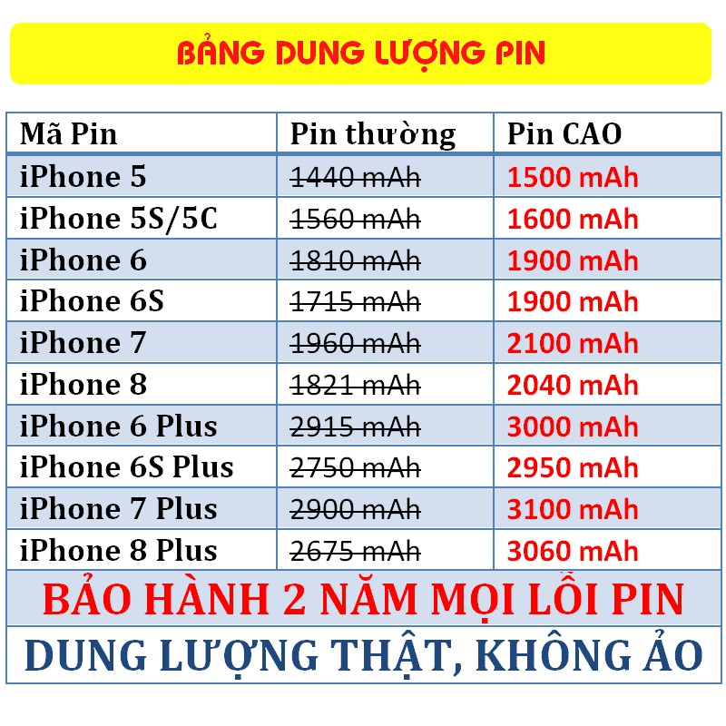 - PIN MỚI 100%, 0 LẦN SẠC, DUNG LƯỢNG CAO- PIN CAM KẾT DUNG LƯỢNG CAO HƠN PIN CHUẨN