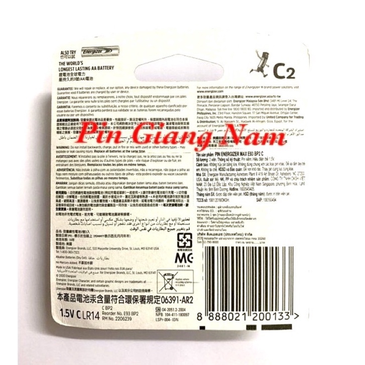 Giới thiệu Pin Trung C LR14 Energizer Chính Hãng Vỉ 2 Viên