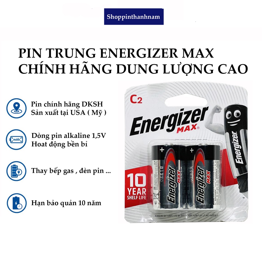 - Pin trung Energizer E93 pin kiềm dung lượng cao- Loại pin : pin kiềm 1,5V