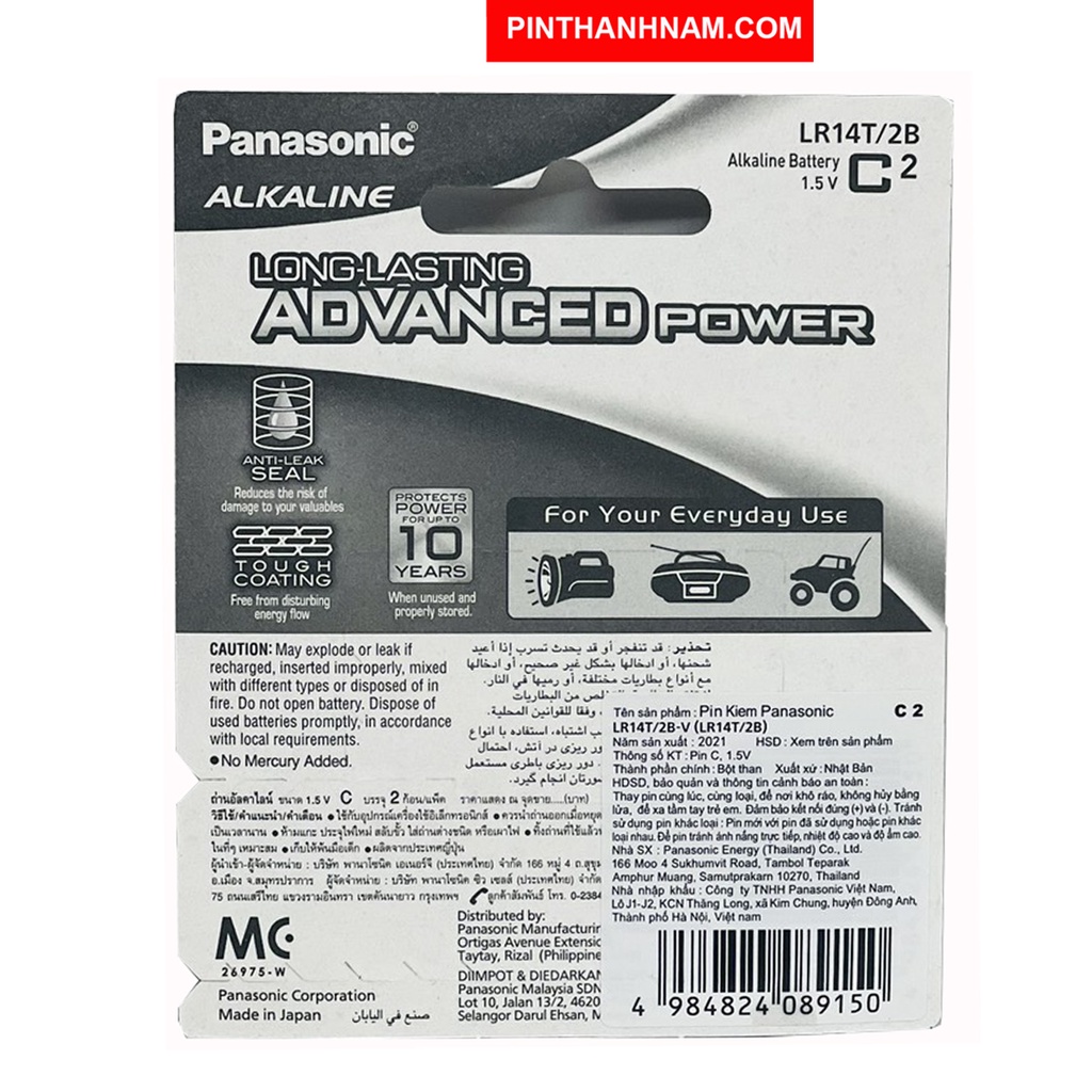 Pin trung Panasonic alkaline LR14 vỉ 2 viên chính hãngTT sản phẩm: 1,5v