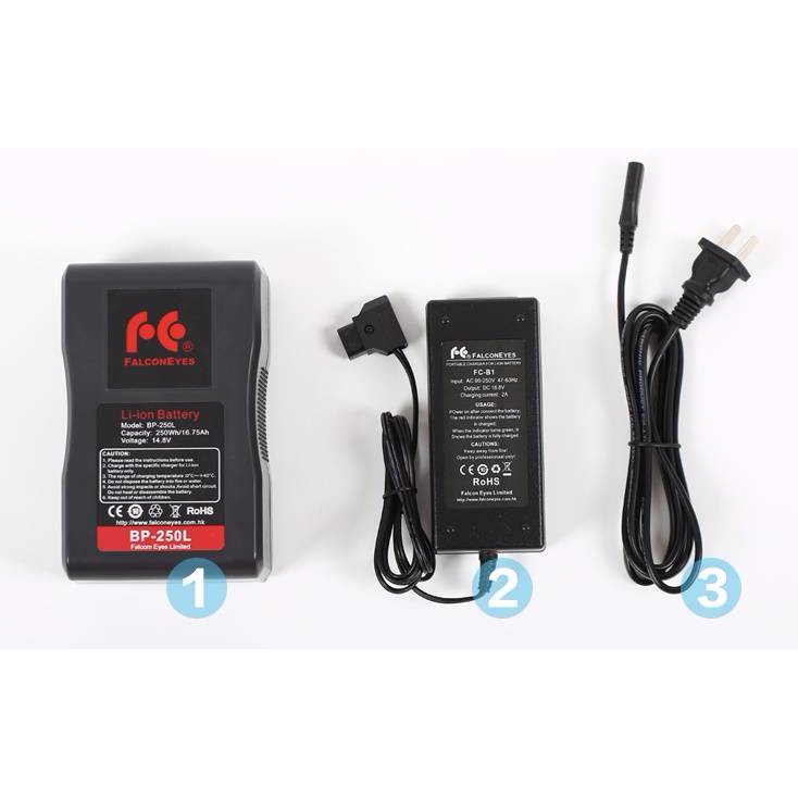 Pin V Mount BP-250L 250Wh Falconeyes cho đèn led máy quay chuyên dụngTHÔNG SỐ KỸ THUẬT: