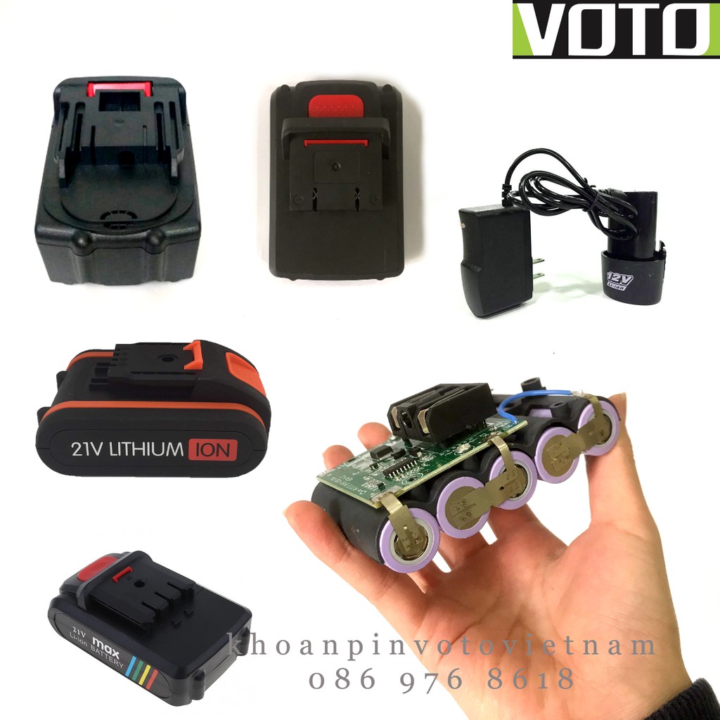 Thông tin sản phẩm Pin Voto 12v 21v pin 3s - 5s - 10s dùng cho máy khoan mài cắt pin Voto, Makita, Dewalt, Hitachi:- Loại pin: pin li-ion 18650
