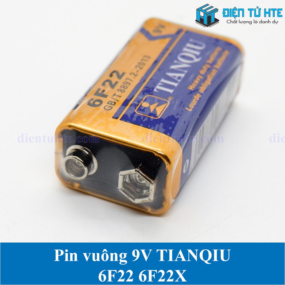 Pin vuông TIANQIU 6F22 6F22X 9VPin vuông 9V thông dụng cho các thiết bị: máy đo cầm tay, đồng hồ vạn năng, Microphone không dây,...