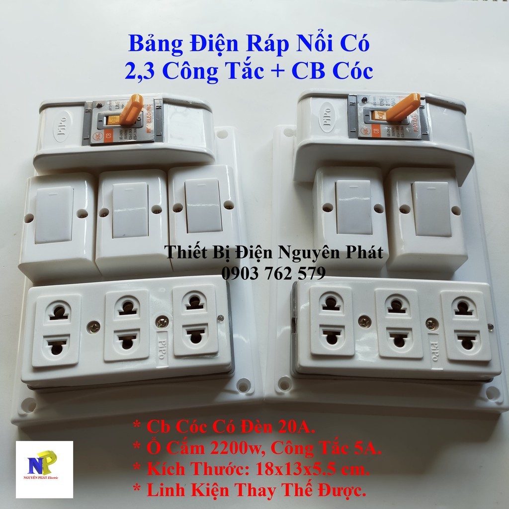 Thiết Bị Điện Gia Dụng > Mạch điện & Phụ tùng > Ổ cắm điện & Dây nối || [PIPO] Bảng Điện Taplo Ráp Nổi ( Có 2 Công Tắc Hoặc 3 Công Tắc) + CB CócCòn hàng