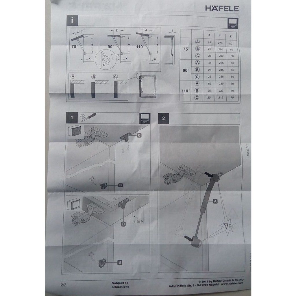 - Tay nâng cánh tủ bếp được hoạt động theo hướng mở lên trên với độ chính xác cao ngay cả khi không dùng tay nắm tủ bếp.Tay nâng cánh tủ - tay đẩy pitton thủy lực dài 27 cm, lực lò xo 100N