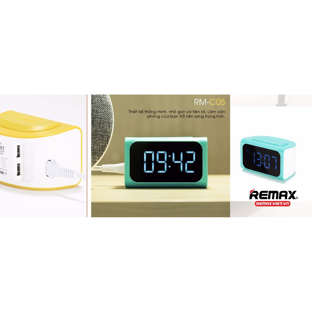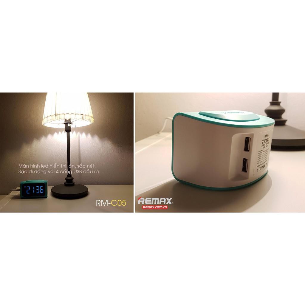 Đồng hồ đa năng Remax RM – C05 với màn hình led hiển thị thời gian chuẩn 24 giờ. Sở hữu Sạc 2 cổng USB xịn này là bạn đang có trong tay một phụ kiện công nghệ vô cùng sành điệu và hiện đại. Chúng ta dễ dàng thiết lập báo thức khi đèn tín hiệu của đồng hồ báo thức bên góc trái sáng lên.