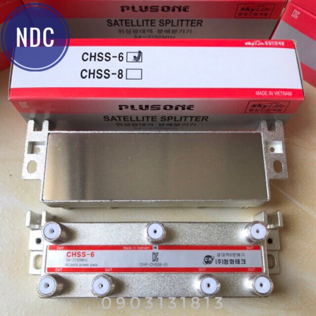 - Bộ chia tín hiệu cao tần CHSS PLUSONE: Chia được tất cả tín hiệu truyền hình (Chia anten parabol, chia tín hiệu truyền hình cáp và chia tín hiệu Anten kỹ thuật số mặt đất).