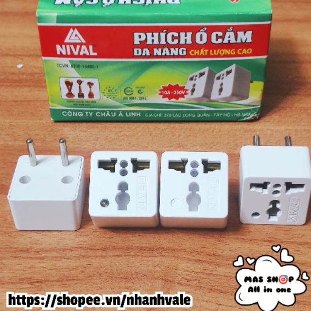 Thiết Bị Điện Gia Dụng > Mạch điện & Phụ tùng > Ổ cắm điện & Dây nối || [PO101/PO102] Phích cắm chuyển 3 ra 2, phích nối ổ đa năng 2 ra 3 Nival 3000WNhựa PC chống vỡ chống cháyCòn hàng