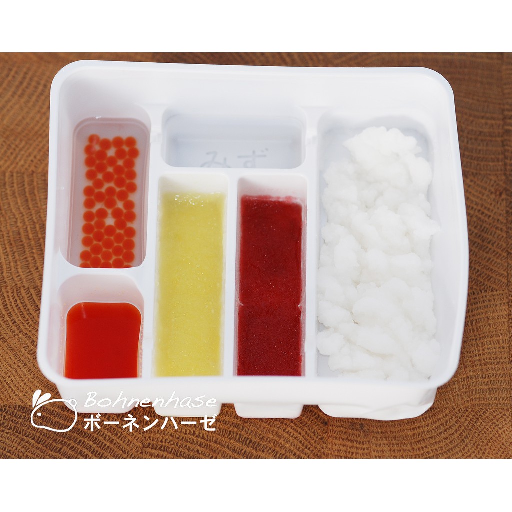 Bước 2: Đổ gói bột vào ngăn có hình bầu dục và trộn đều tay để có món cơm dẻo, rồi cho gói bột màu hồng sang ngăn bên cạnh khuấy đều để có món cá hồi, làm tương tự với các gói màu còn lại để tạo thành những món khác nhau.