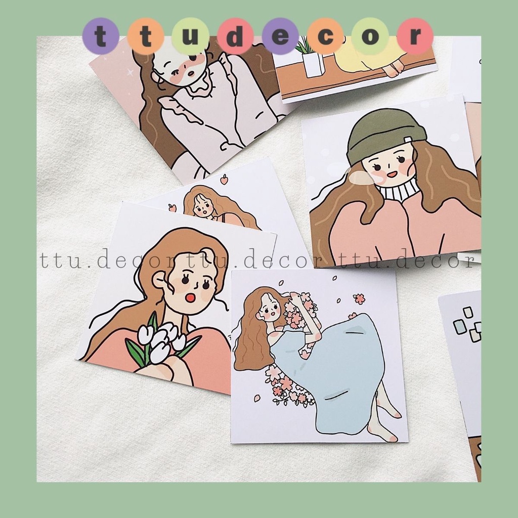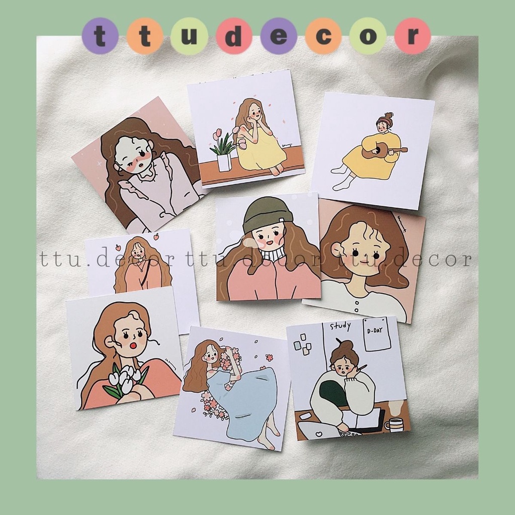 POSTCARD cô gái set 9 tấm decor trang trí ttu.decor