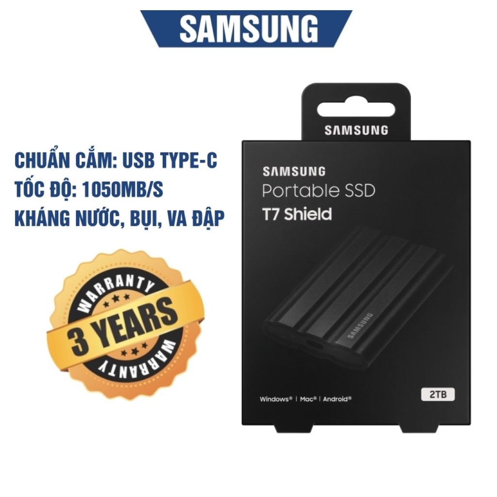 Máy tính & Laptop > Thiết Bị Lưu Trữ > Ổ Cứng Di Động || Pre-Order | Ổ cứng di động SSD Samsung T7 SHIELD 2TB Màu ĐenCòn hàng