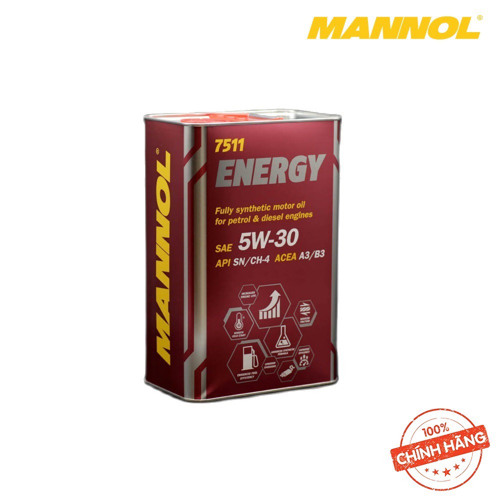Giới thiệu [PRO] Nhớt MANNOL 7511 Energy 5W-30 SN/CH-4 | 4Lít Tổng Hợp Toàn Phần Chứa Ester