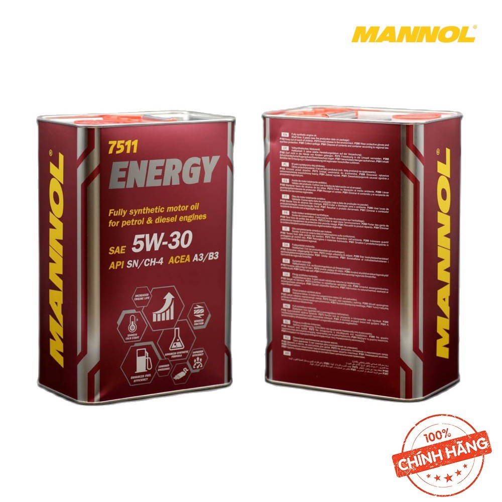 [PRO] Nhớt MANNOL 7511 Energy 5W-30 SN/CH-4 | 4Lít Tổng Hợp Toàn Phần Chứa Ester