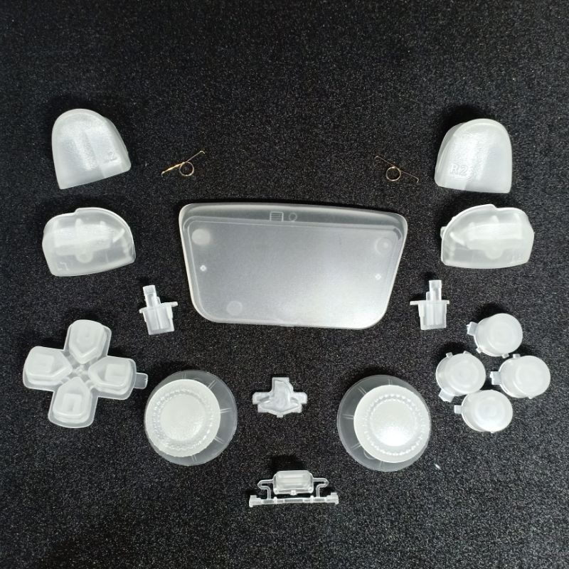 Bộ nút trong suốt trắng cho tay bấm ps5 gồm full các nút cho bạn dễ dàng thay thế hay tự tay mod tay cầm PS5.sản phẩm y hình.