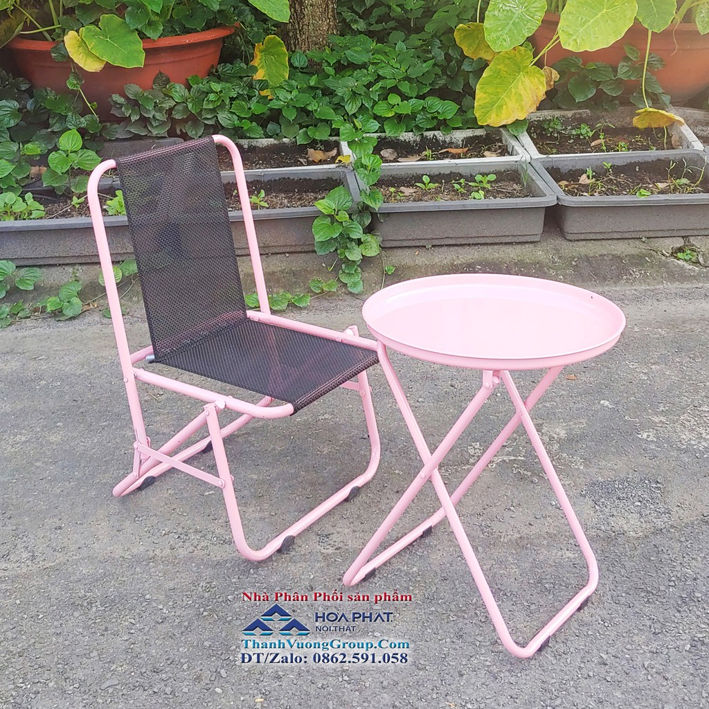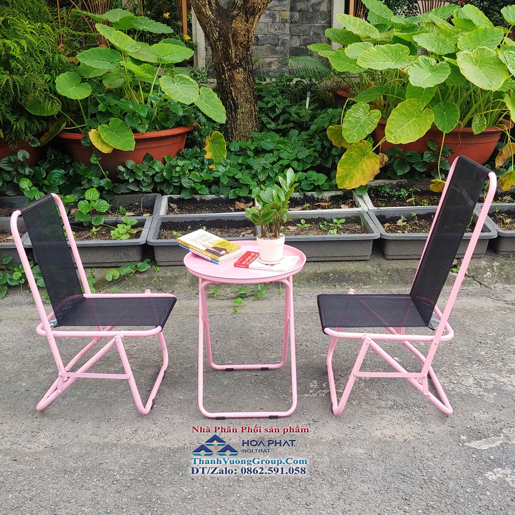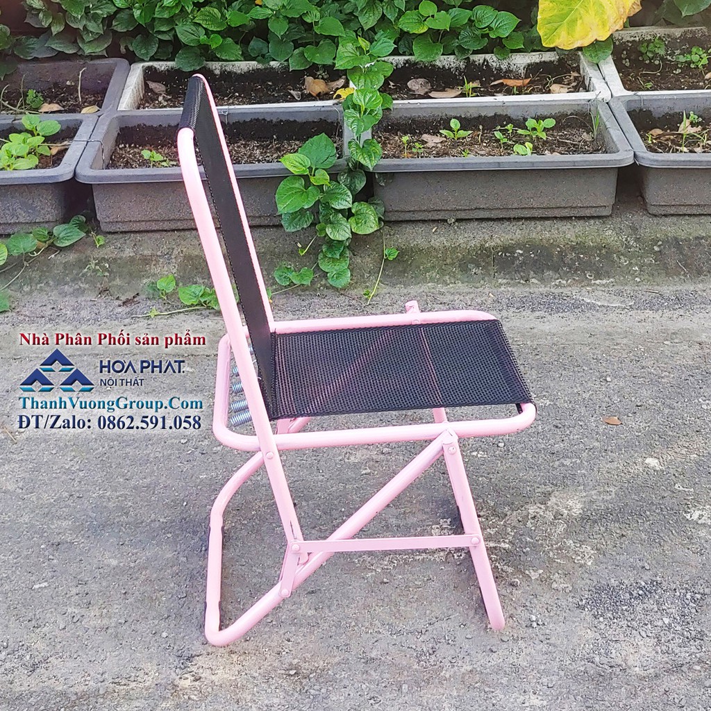 {Pui..Pui..Pui} Ghế xếp cà phê sắt khung sơn tĩnh điện Lưng thấp (Vải Lưới) liền Hồng