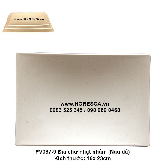 PV087-9 Dĩa chữ nhật nhám 9" (Nâu Đá)