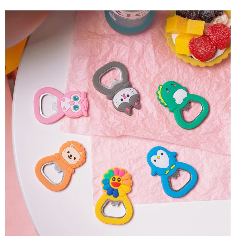 mở nắp chai bia, nc ngọt bằng thép k rỉ, bọc silicon hình hoạt hình đáng yêu tiện dụng