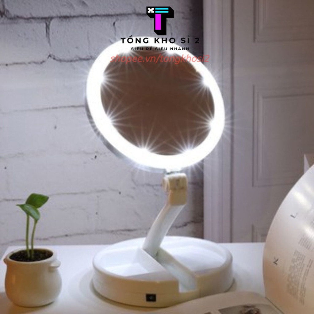 Nhà cửa & Đời sống > Trang trí nhà cửa > Gương || PVN12388 Gương trang điểm đèn led để bàn gấp gọn hình tròn T2Còn hàng