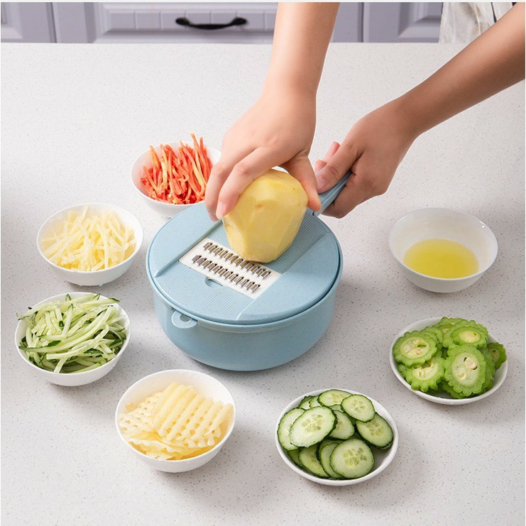 THÔNG TIN SẢN PHẨM: Bộ dụng cụ đa năng nạo gọt rau củ quả full chức năng, dụng cụ nhà bếp bào sợi, thái lát có nhiều lưỡi dao thay thế - Chất liệu: Nhựa PP, Thép không gỉ. - Sản phẩm gồm: 01 hộp chứa + 01 rổ + 01 dụng cụ mài và lọc trứng + 01 Dụng cụ giữ củ quả + 01 dụng cụ giữ lưỡi bào thái với các lưỡi bào cắt thái khác nhau. - Gọt vỏ, nạo sợi, bào nhỏ, thái lát, thái răng cưa… các loại rau củ phổ biến như dưa leo, khoai tây, khoai lang, cà rốt, cà chua,… - Dụng cụ có kèm đầu giữ rau củ bảo vệ tay bạn an toàn và tận dụng những phần rau củ còn sót lại. - Sản phẩm gồm các lưỡi dao khác nhau giúp việc bào, cắt rau củ trở nên dễ dàng, bữa ăn sẽ trở nên vui mắt và ngon miệng hơn. - Sản phẩm được tích hợp ngăn chứa lưỡi dao trên thân nạo, không lo thất lạc, dễ tìm dễ lấy. Đặc điểm nổi bật: – Cắt và rửa, dễ dàng và nhanh chóng, khóa xoay, góc xoay tự động, dễ rửa rau và thoát nước. – Bạn có thể sử dụng đầu dao khác nhau theo yêu cầu của bạn, thuận tiện hơn cho bạn để nấu ăn. – Bạn có thể cắt rau và sau đó làm sạch chúng trực tiếp thông qua một thiết bị thoát nước. – Tay cầm thoải mái có thể điều khiển bằng một tay. – Vỏ cắt có thể được tháo ra tự do để dễ sử dụng. – Chất liệu: Nhựa cao cấp, inox. – Kích thước nhỏ gọn. (Như hình minh họa) #dungcunhabep #dodungnhabep #bonaogotraucuqua #bodungcudanang9in1 #thiettiennaoraucu #dungcunaoraucuaquakemroGiá BFIC