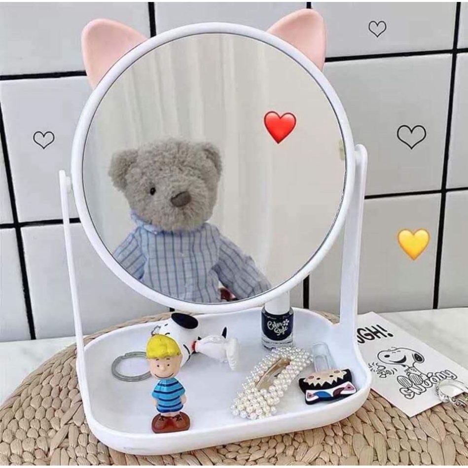 Gương tai thỏ tai gấu mèo để bàn có chỗ để đồ siêu tiện lợi