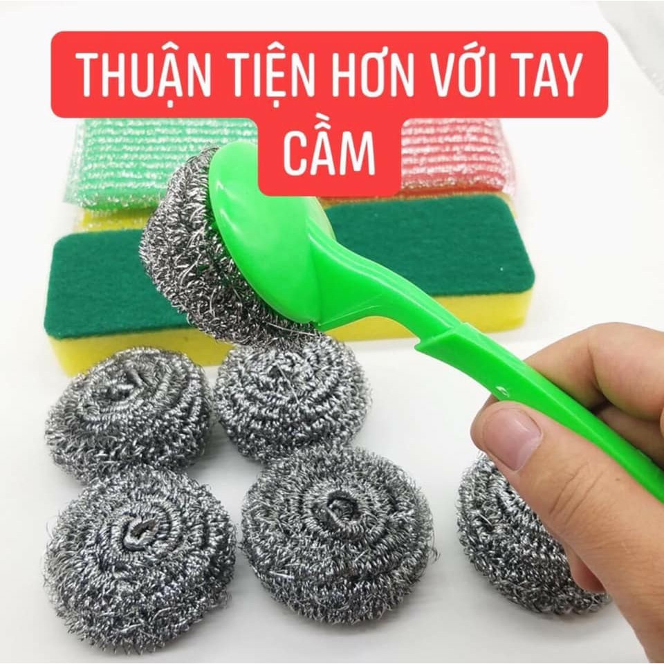 Cọ nồi xoong chảo luôn là nỗi ám ảnh bởi độ dơ, dầu mỡ rất dễ bám vào tay nhưng giờ đây với chiếc cọ nồi chảo thông minh có tay cầm bạn chẳng lo điều đó.* Thiết kế thông minh với tay cầm