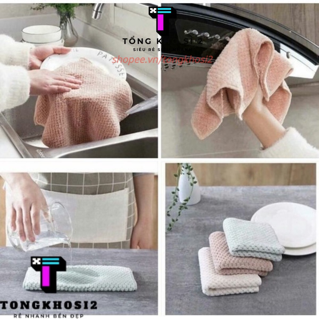 PVN1876 Khăn lau 23*23cm đa năng 2 mặt lau Bếp - Rửa bát - lau Bàn khăn thấm nước siêu tốt nhanh khô T2