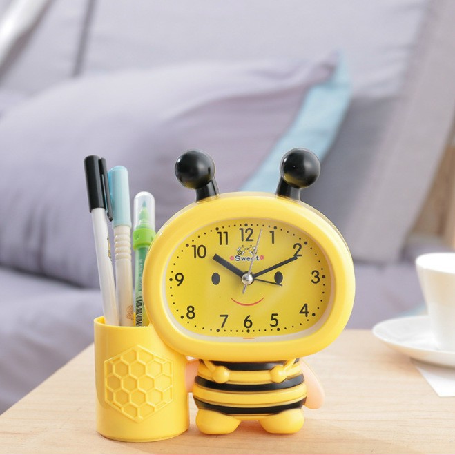 Bạn cần một chiếc đồng hồ để bàn trẻ trung và độc đáo thể hiện cá tính của riêng mình. Bạn là một người có khiếu thẩm mỹ, yêu thích những loài động vật bé xinh như chú ong vàng chăm chỉ. Vậy thì một chiếc đồng hồ bàn hình chú ong kèm ống bút để đầu giường sẽ luôn tạo cho bạn một nguồn cảm hứng tuyệt vời.- Đồng hồ còn sở hữu chế độ cài báo thức tiện dụng. Tiếng chuông báo thức rất êm và nét đủ làm bạn thức giấc mà không đem lại cảm giác ức chế, mệt mỏi cho bạn.