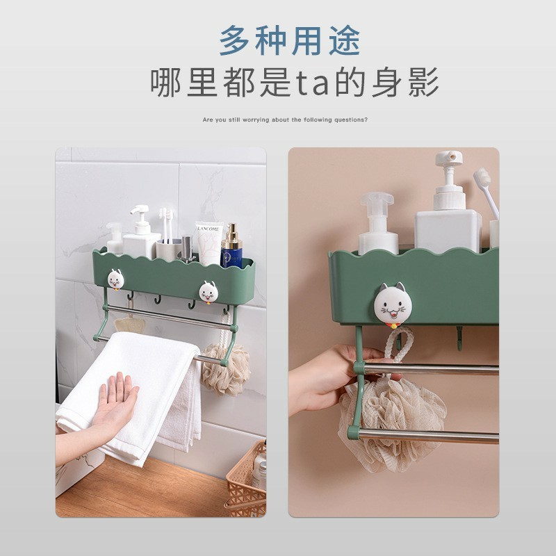 🧺Kệ để đồ kèm móc treo và thanh treo khăn tiện dụng.