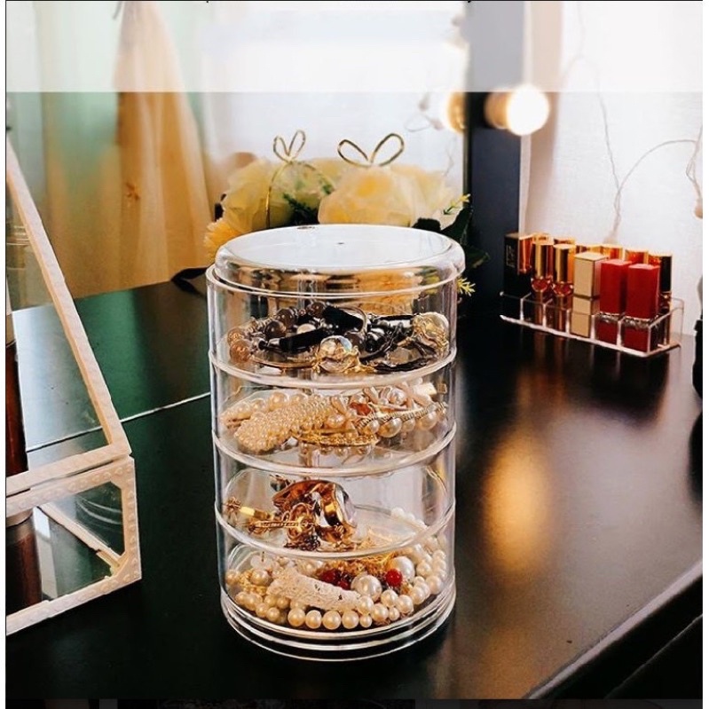 Hơn nữa, Kệ đựng trang sức xoay 360 độ 5 tầng với 5 tầng được chia riêng và có thể xoay 360 độ, bạn có thể thỏa sức sắp xếp và đựng những món phụ kiện yêu thích của mình