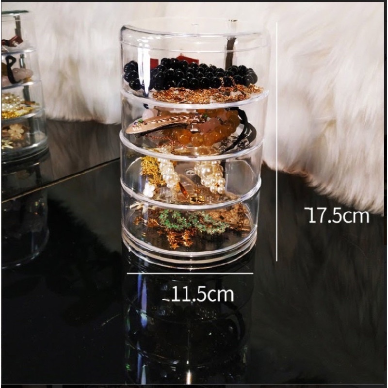 Kệ đựng trang sức xoay 360 độ 4 tầng này được thiết kế từ nhựa Mica trong suốt không chỉ giúp bạn dễ quan sát để lựa chọn phụ kiện mà còn dễ vệ sinh, dễ lau chùi