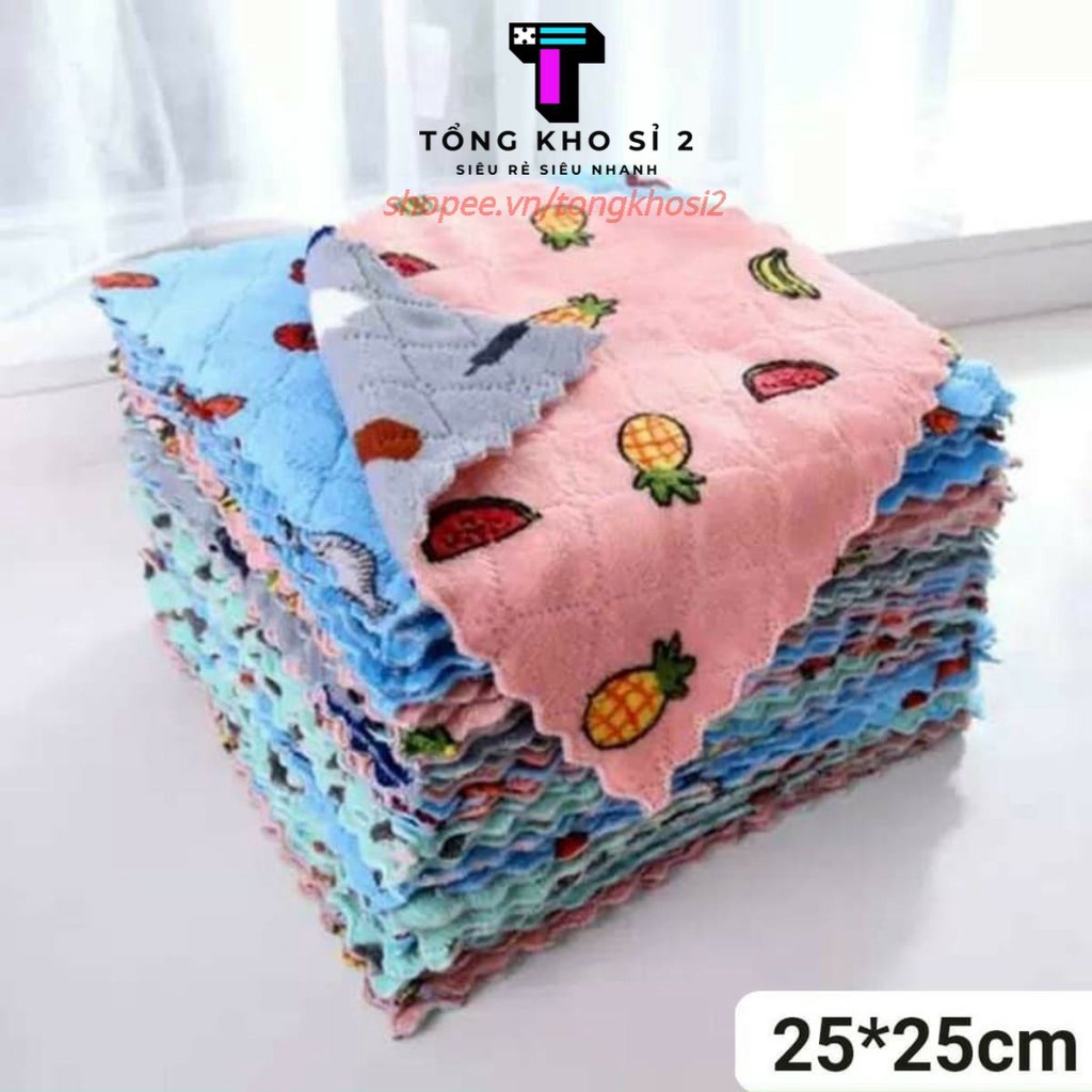 Nhà cửa & Đời sống > Dụng cụ chăm sóc nhà cửa > Khăn vệ sinh || PVN24545 Set 10 khăn lau đa năng 2 mặt hình họa tiết hoa quả, siêu thấm hút lau bếp, lau chén đĩa, lau bàn ghế tiện lợiCòn hàng