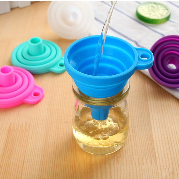 - Phễu gấp gọn sillicon là một vật dụng rất tiện ích cho gia đình, được sử dụng với nhiều mục đích khác nhau: chiết dầu ăn, mắm, tương, mật ong, rượu... ra chai nhỏ thuận tiện cho việc sử dụng hằng ngày; đổ nước cam, nước ép,... vào chai để mang theo đi học đi làm.