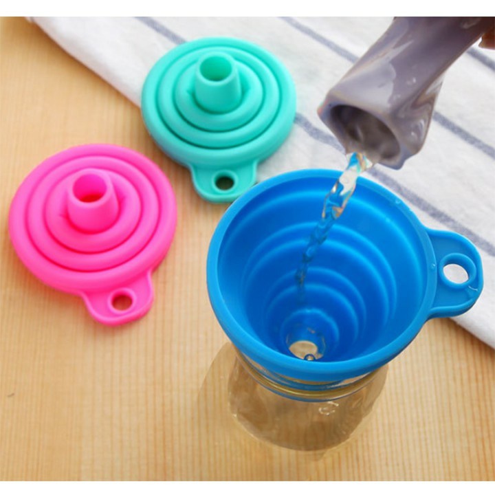 - Phễu gấp gọn sillicon là một vật dụng rất tiện ích cho gia đình, được sử dụng với nhiều mục đích khác nhau: chiết dầu ăn, mắm, tương, mật ong, rượu... ra chai nhỏ thuận tiện cho việc sử dụng hằng ngày; đổ nước cam, nước ép,... vào chai để mang theo đi học đi làm.