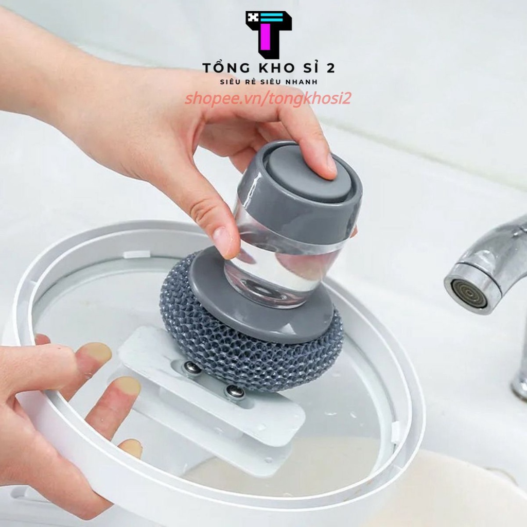 PVN25027 Dụng cụ cọ rửa xoong nồi có bình đựng xà phòng tiện lợi an toàn cho da tay T2