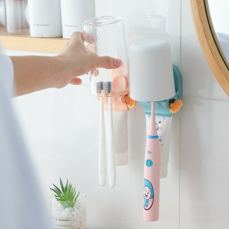 PVN25652 Dụng cụ nặn kem đánh răng dán tường có giá kẹp bàn chải đa năng T2 .