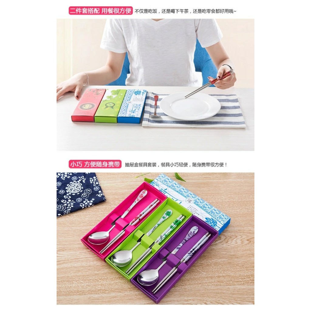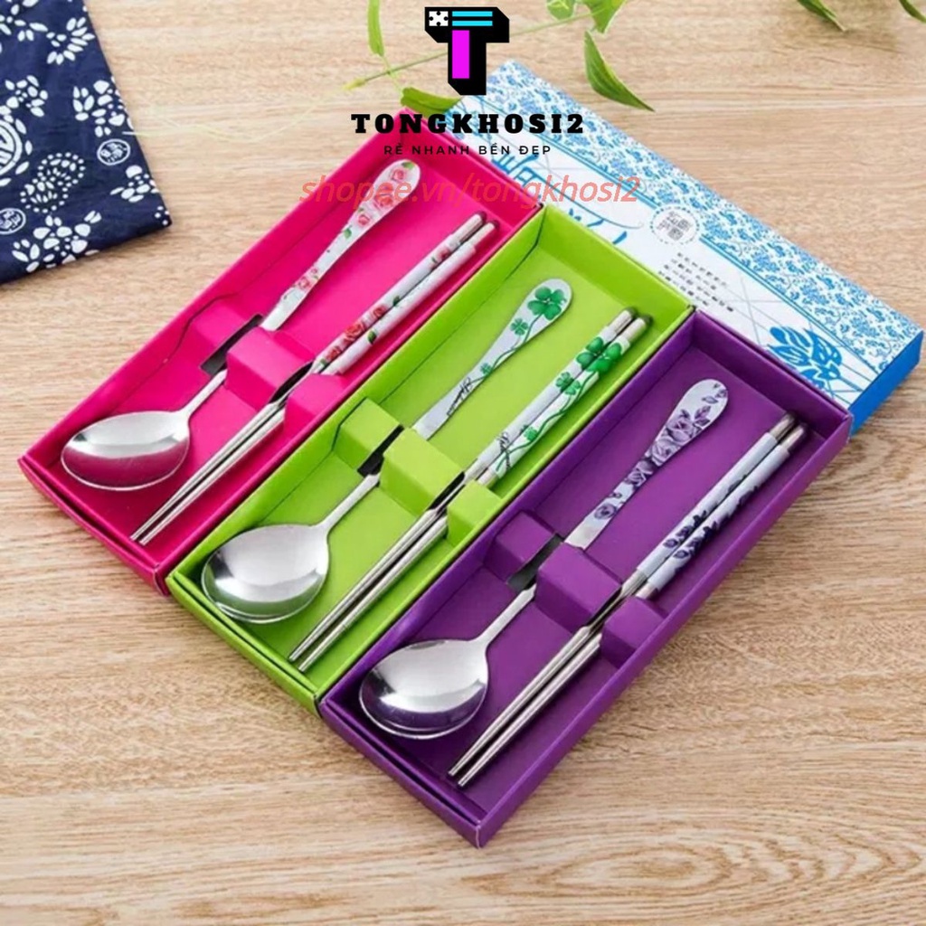 Bộ sản phẩm Bộ Thìa Đũa INOX 340 Không Gỉ Cực Đẹp Có Hộp Đựng Bằng Giấy👉Chất liệu: inox 340 cao cấp ko gỉ, sáng bóng với hộp đựng 4 màu: xanh- đỏ- tím -hồng