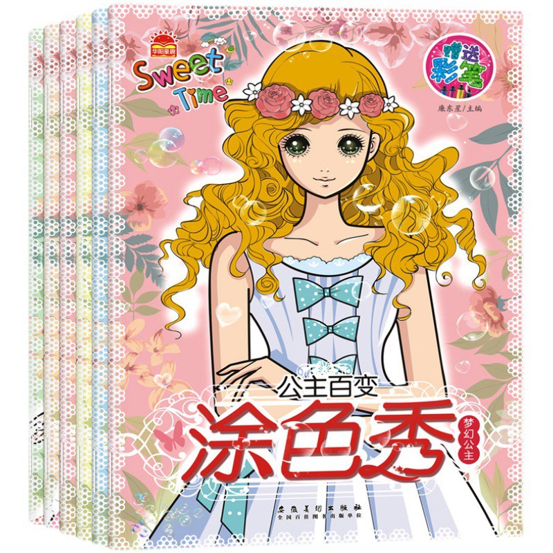 Văn Phòng Phẩm > Sổ & Giấy Các Loại > Giấy In || PVN30553 Bộ 6 Tô màu sáng tạo cho bé hình công chúa + tặng kèm hộp bút màu T2Còn hàng