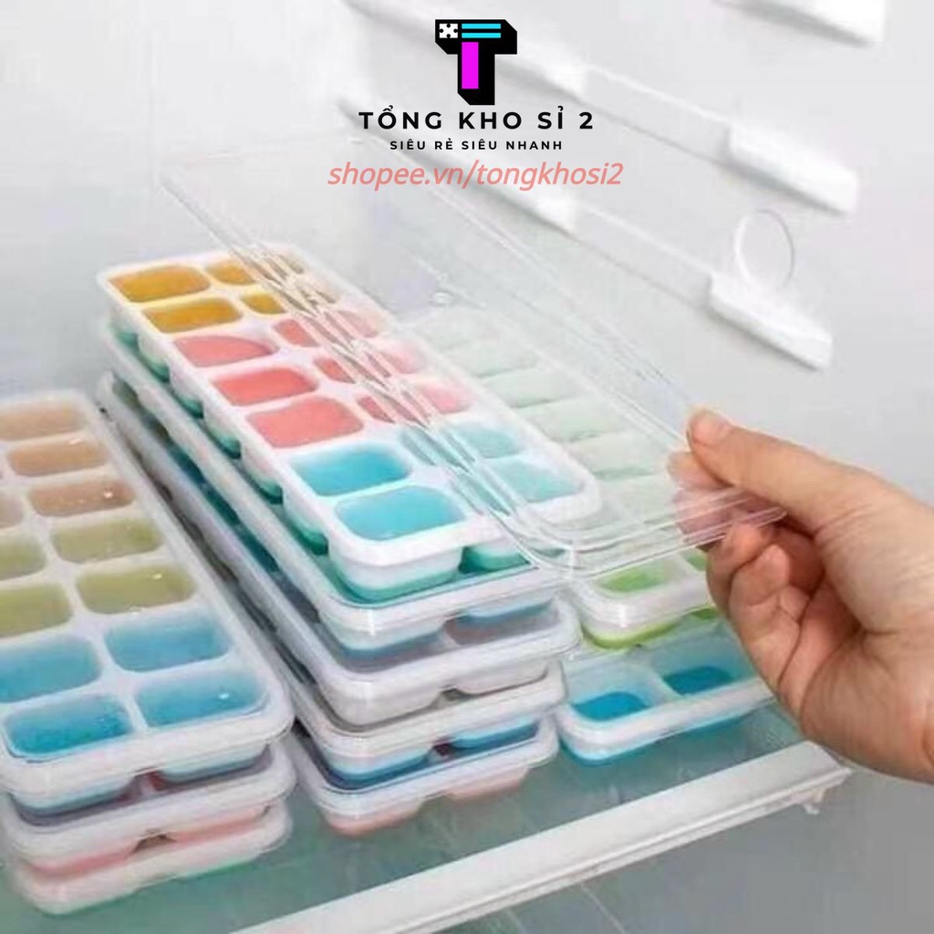 Nhà cửa & Đời sống > Dụng cụ nhà bếp > Khác || PVN30720 Khay làm đá, khay đá silicon 14 ô có nắp đậy T2Còn hàng