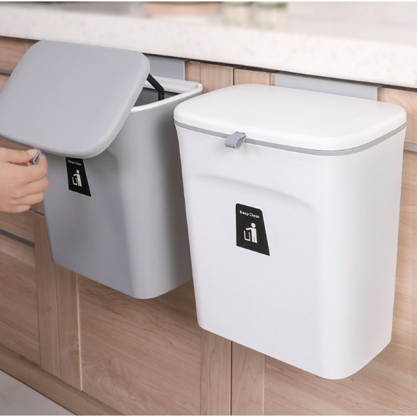 Nhà cửa & Đời sống > Dụng cụ chăm sóc nhà cửa > Thùng rác || PVN31569 Thùng rác treo tủ bếp phòng tắm có nắp bằng cách móc cài T2 .Còn hàng