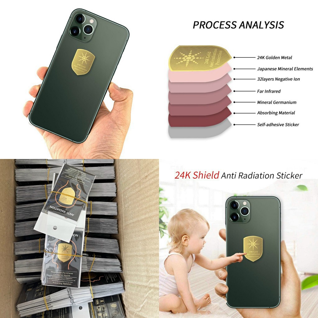 TRANG BỊ ĐỂ BẢO VỆ SỨC KHỎE GIA ĐÌNH BẠN NGAY NÀO!Anti Radiation Sticker là miếng dán chống bức xạ điện từ thích hợp cho tất cả điện thoại di động, iPad, MacBook, máy tính, máy tính xách tay và các thiết bị điện tử. Chip ngăn bức xạ nhỏ gọn mạ vàng 24K Sang trọng và độc đáo.