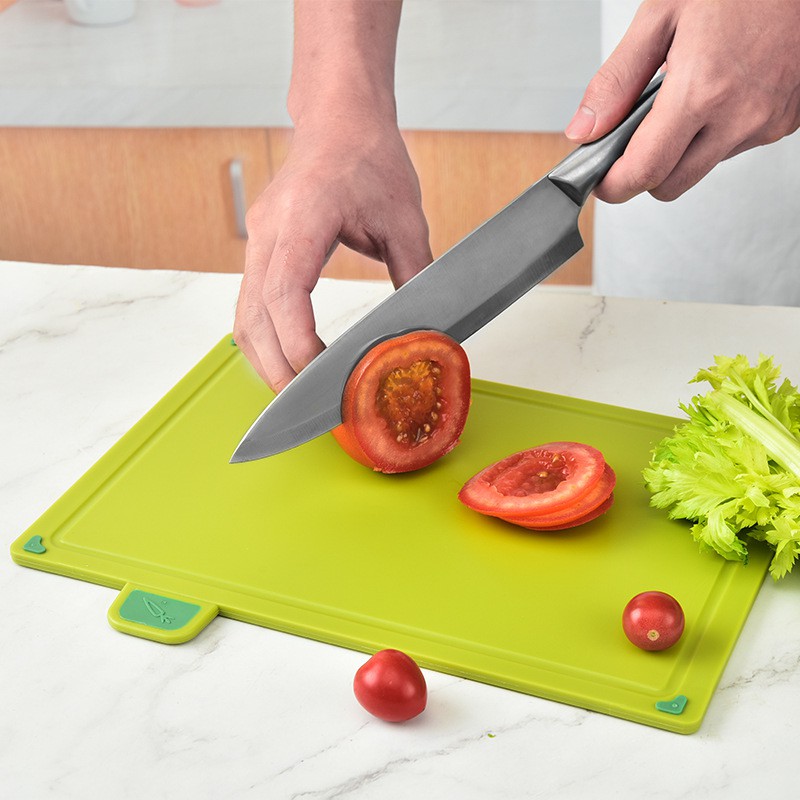 Bề mặt cắt dễ dàng, thân thiện với dao với các cạnh bắt vụn, chân chống trượt. Thớt được mã hóa màu cho các loại thực phẩm khác nhau,